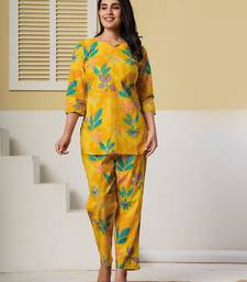 Made From Premium Breathable Cotton Fabric, This Outfit Ensures Lightweight Comfort And Easy Movement All Day Long. The Bright Yellow Base Adorned With Fresh Floral Motifs Adds A Lively And Elegant Touch, Making It Perfect For Casual Outings, Office Wear, Day Events, And Travel.
