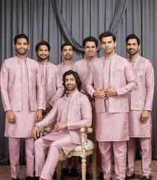 | Product Name | Pink Art Silk 3 Peice Kurta Jacket Set For Men | |
