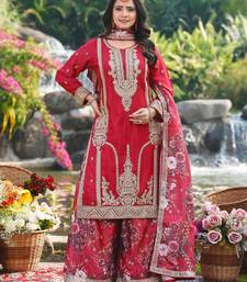 Product Name Red Chinon Kurta Palazzo Set Round Neck