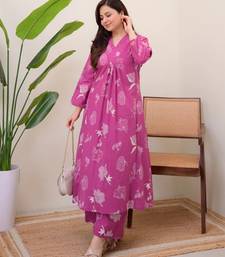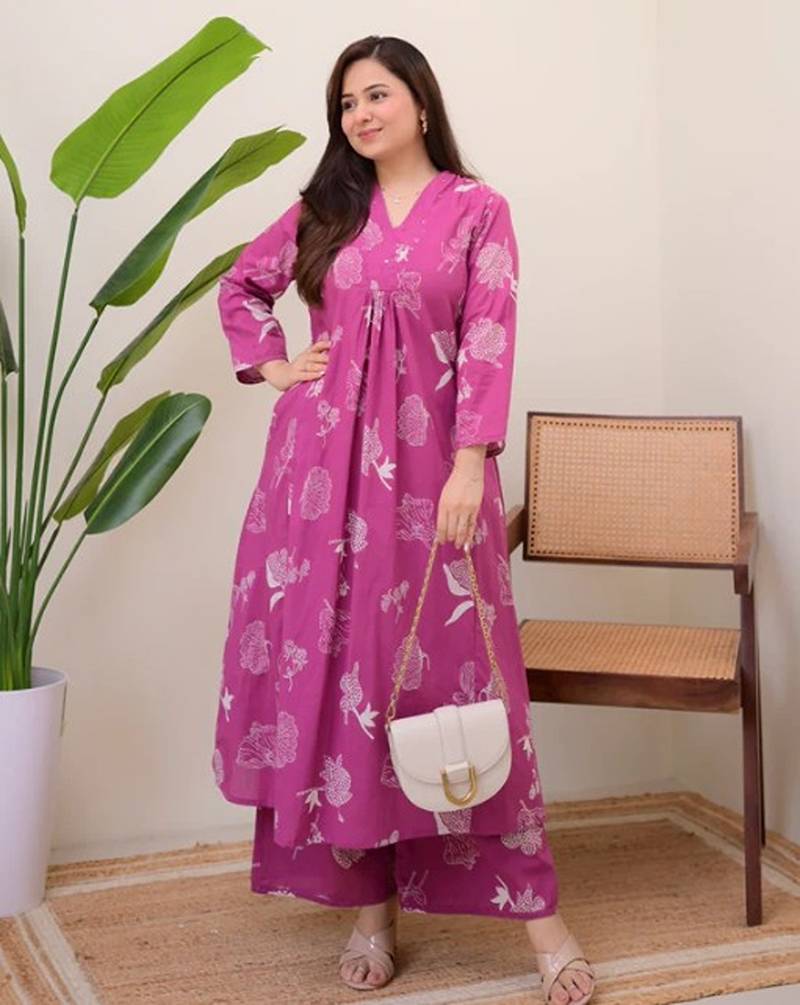A-line rayon printed kurta with pant for women and girls ethnic wear
