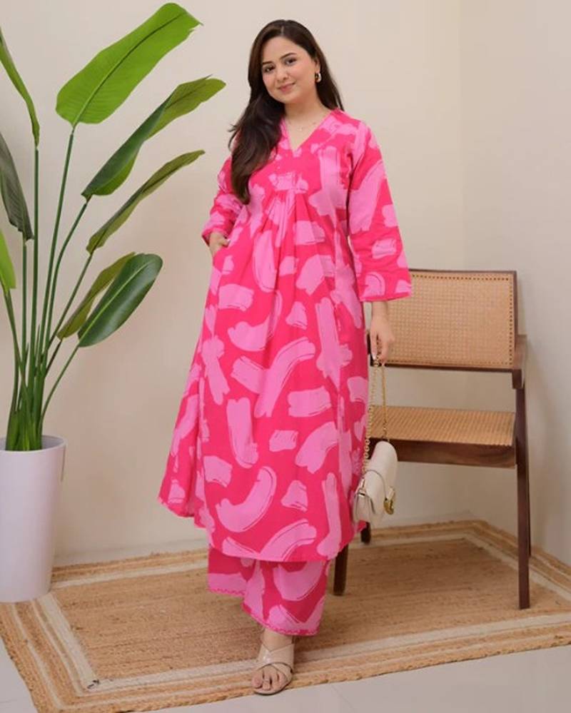 A-line rayon printed kurta with pant for women and girls ethnic wear