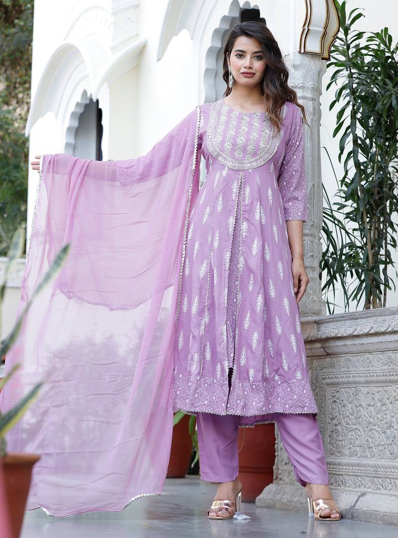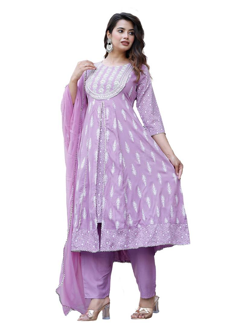 | Product Name | Anarkali Rayon Printed Embroidered Kurta Pant And Dupatta Set For Women And Girls | |