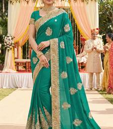 Georgette wedding wear saree in green with embroidery & crystals stone work