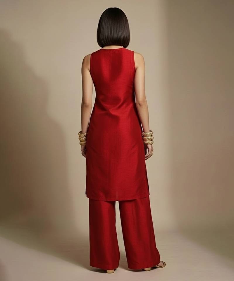 | Product Name | Red Embroidered Raw Silk Co Ord Set | |