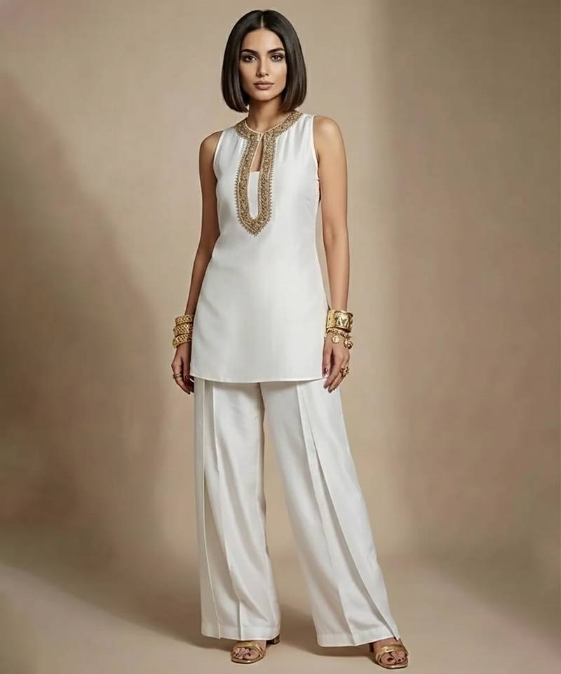 | Product Description | This White Embroidered Raw Silk Co Ord Set Reflects Timeless Sophistication With Subtle Elegance. The Textured Raw Silk Fabric Provides A Refined Silhouette While Intricate Embroidery Adds Delicate Charm. Ideal For Festive Occasions, Cultural Events, And Elegant Celebrations.