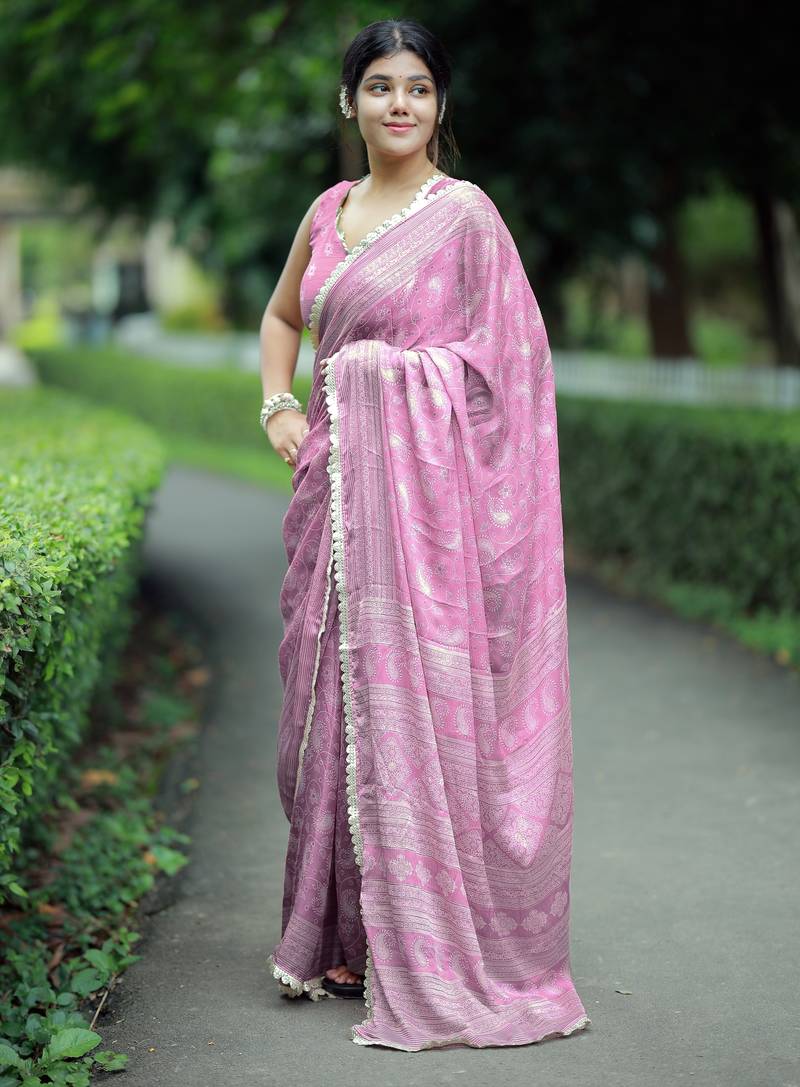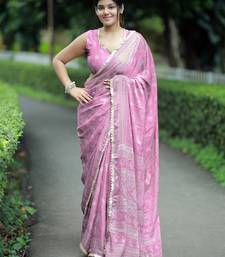 Mirchi fashion paisle print chiffon saree with unstitched blouse piece (pink)