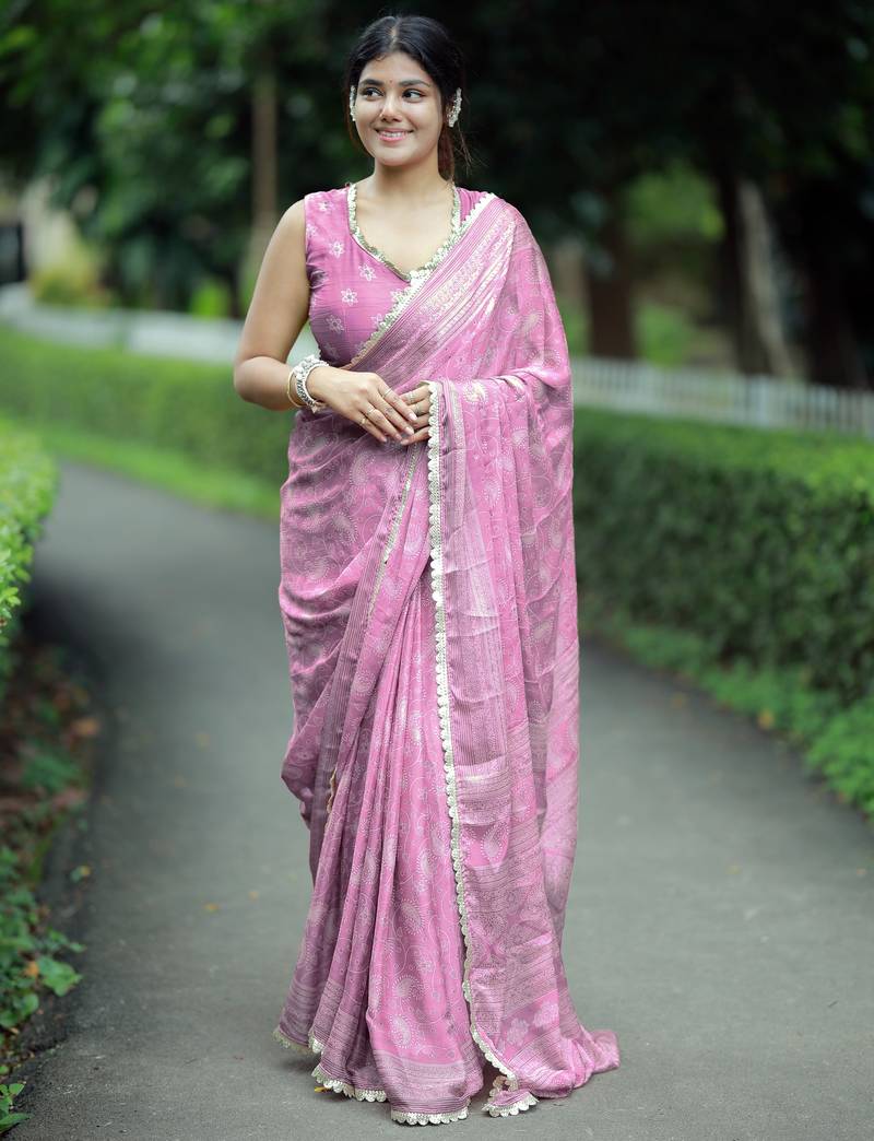 | Product Name | Mirchi Fashion Paisle Print Chiffon Saree With Unstitched Blouse Piece (Pink) | |