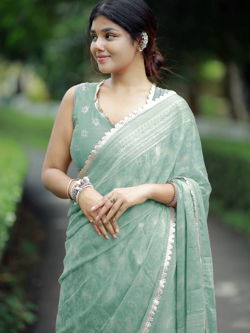 | Product Name | Mirchi Fashion Paisle Print Chiffon Saree With Unstitched Blouse Piece (Teal) | |