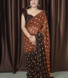 Mirchi fashion polka print georgette saree with unstitched blouse piece (brown)
