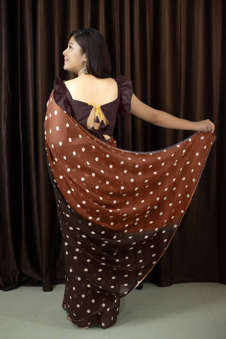 | Product Name | Mirchi Fashion Polka Print Georgette Saree With Unstitched Blouse Piece (Brown) | |