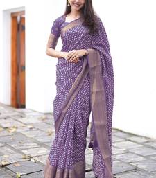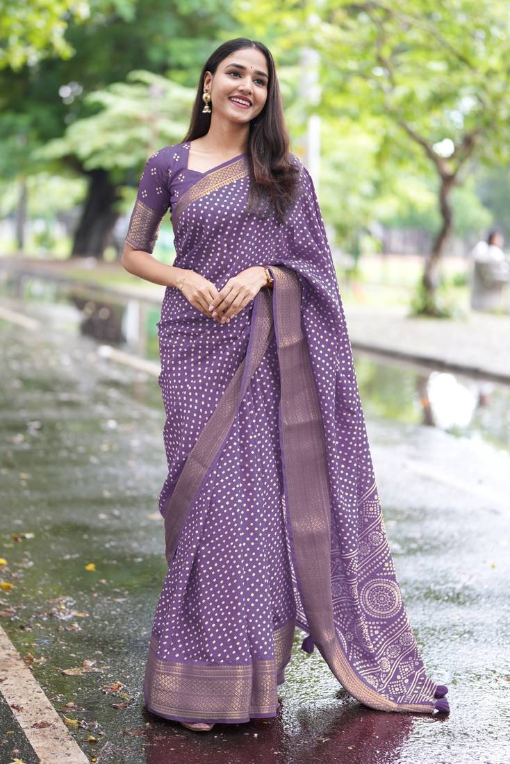 Mirchi fashion women’s bandhani print cotton blend saree with unstitched blouse piece – purple