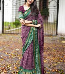 Mirchi fashion women’s geometric print cotton blend saree with unstitched blouse piece – magenta