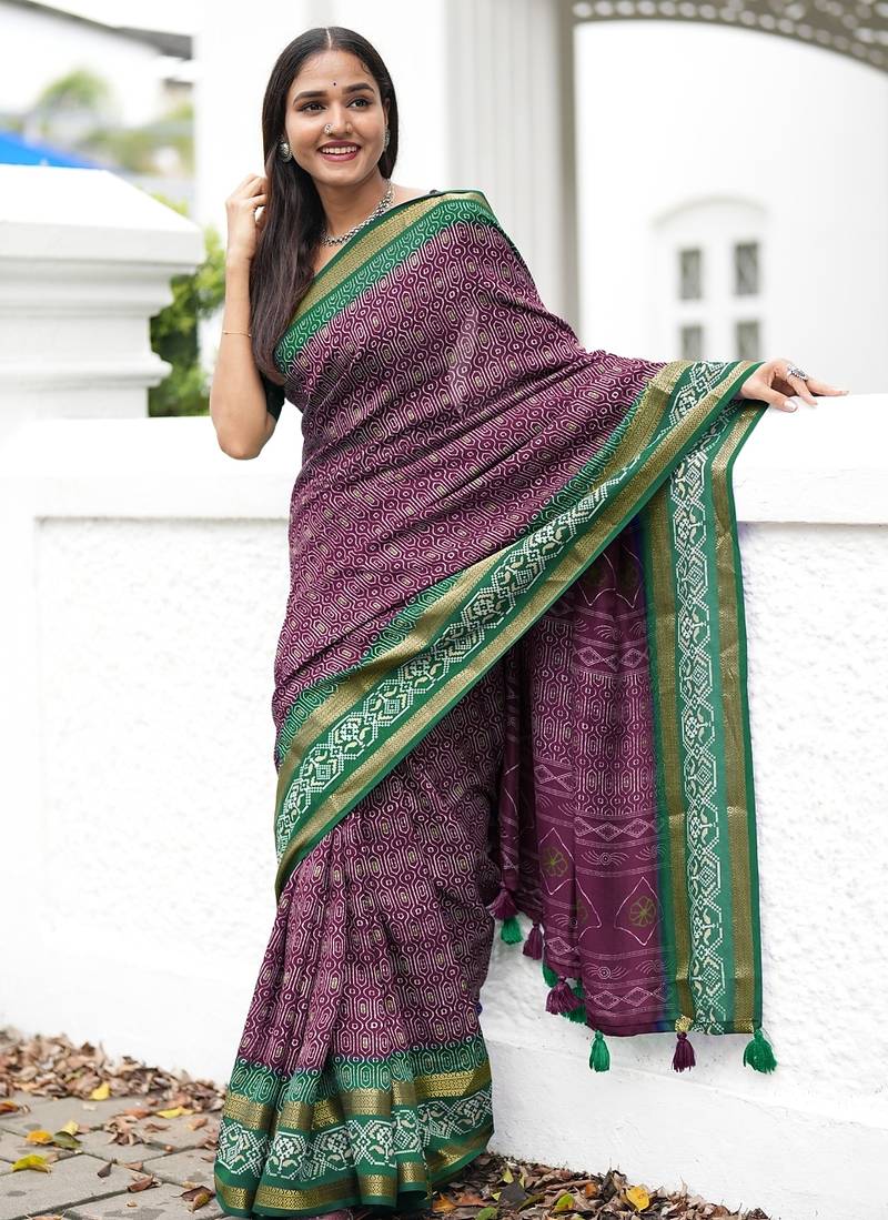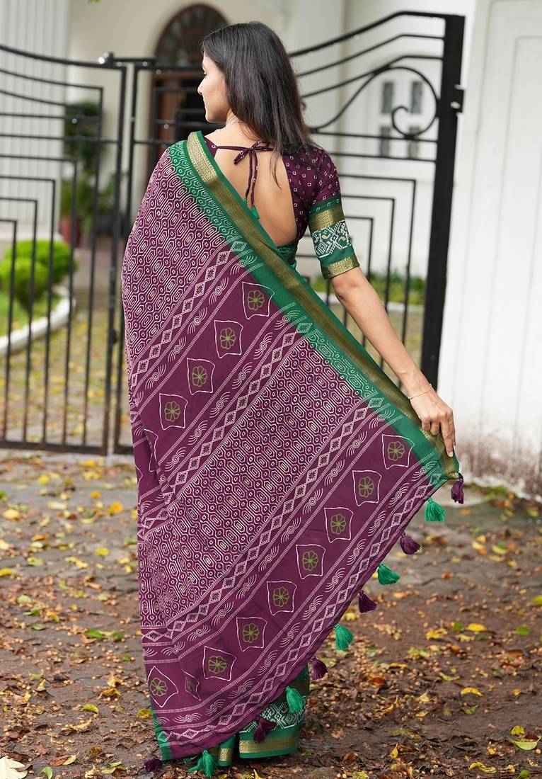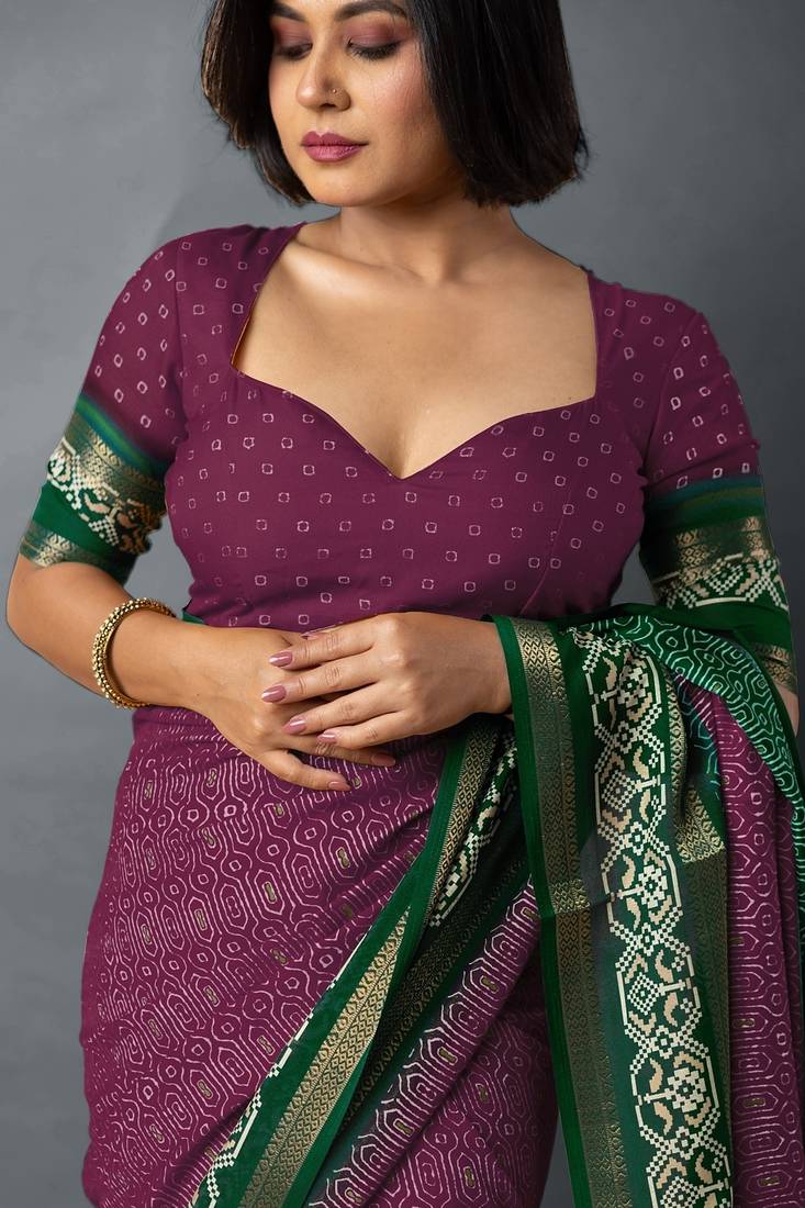 | Product Name | Mirchi Fashion Women’s Geometric Print Cotton Blend Saree With Unstitched Blouse Piece – Magenta | |