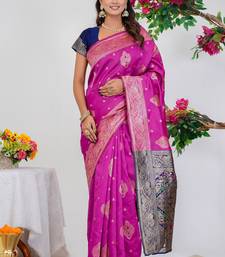 Subham woven design silk blend saree with unstitched blouse piece (pink)