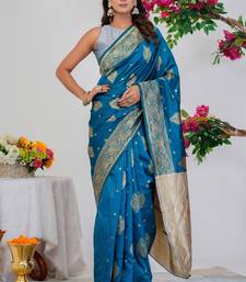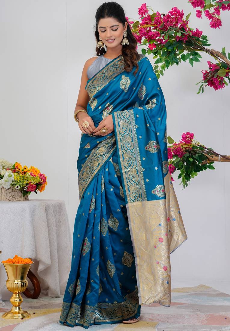 Subham woven design silk blend saree with unstitched blouse piece (turquoise)