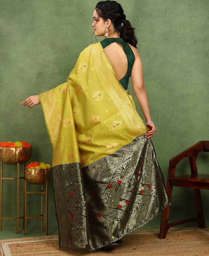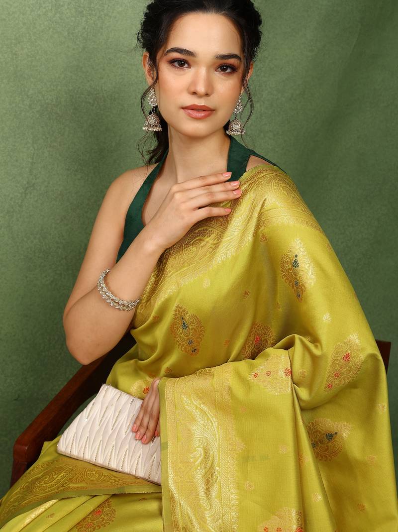 Subham woven design silk blend saree with unstitched blouse piece (yellow)