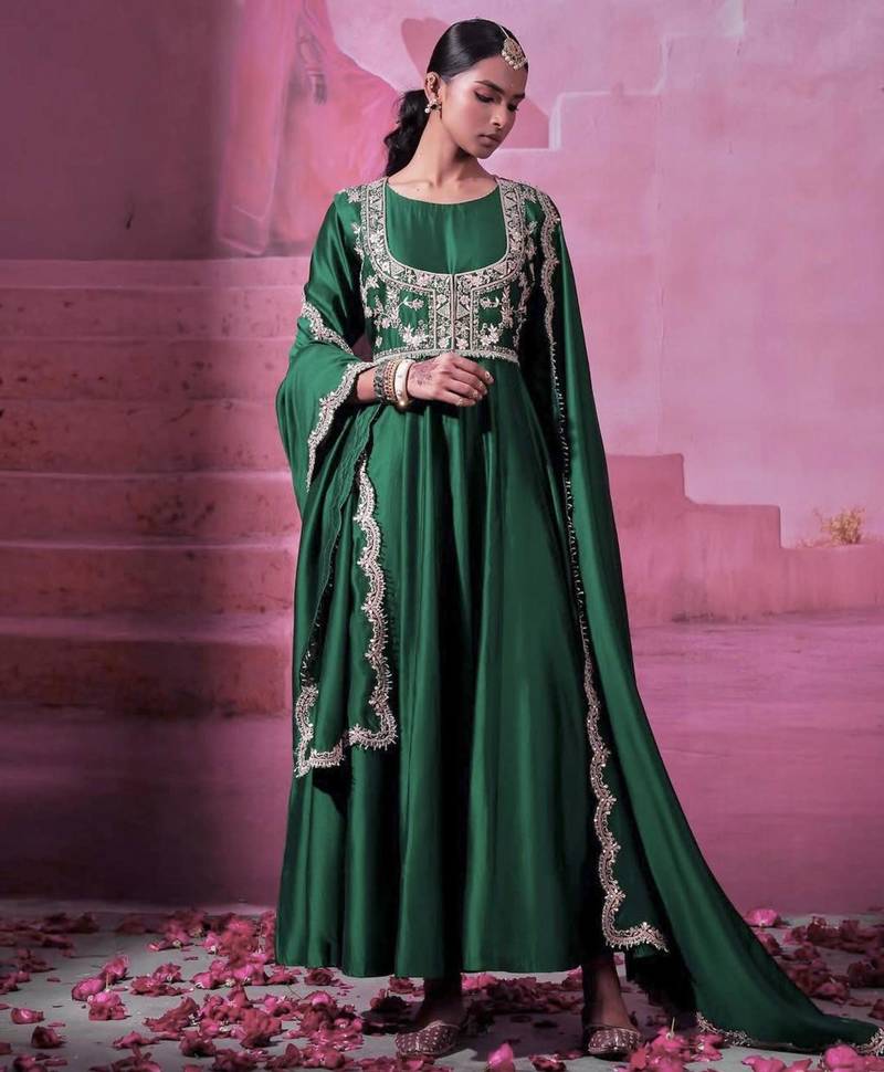 | Product Name | Green Chinnon Silk Solid Flared Gown With Sequins Embroidered Koti And Dupatta | |