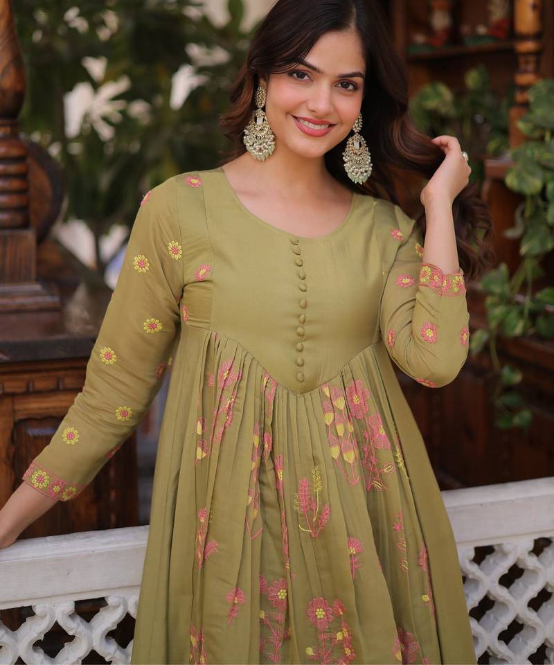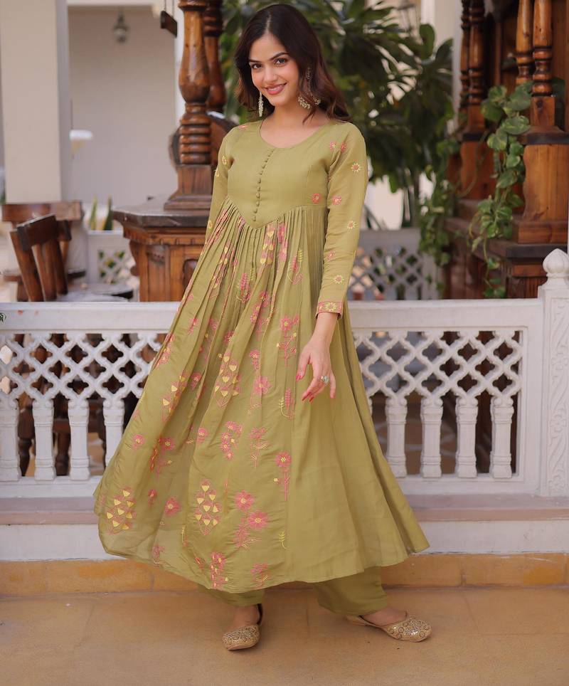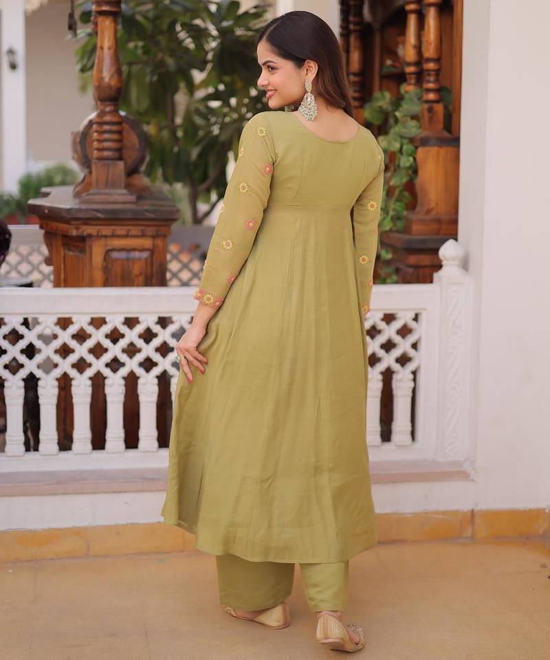 Product Name Pista Mal Chanderi Beads Embroidered Work Kurta Sets