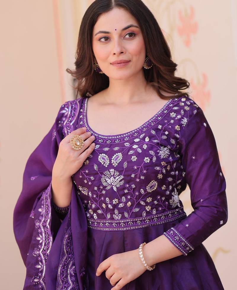 | Product Name | Purple Gold Crush Beads Embroidered Work Flared Gown With Heavy Dupatta | |