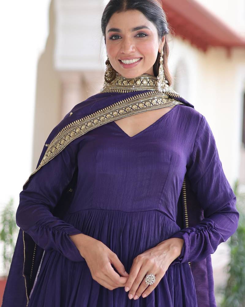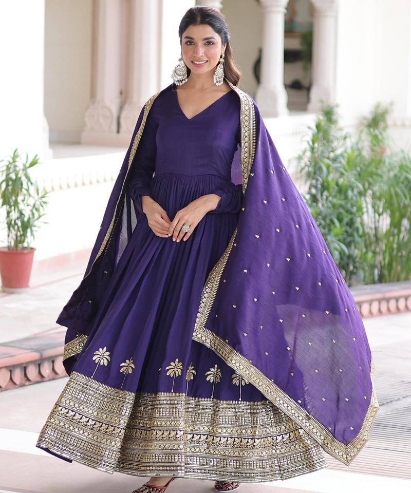 | Product Name | Purple Vichitra Silk Sequins Embroidered Gown With Heavy Dupatta | |