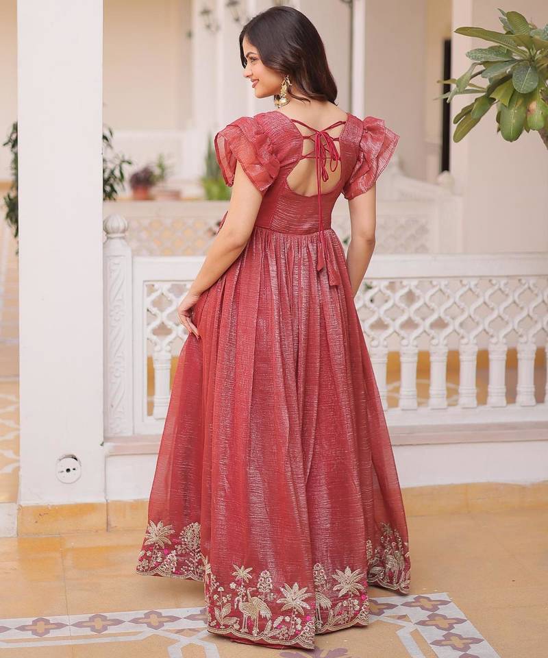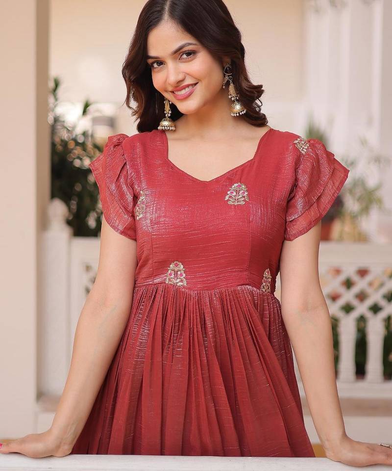 | Product Name | Rust Silver Crunchy Beads Embroidered Work Designer Gown | |