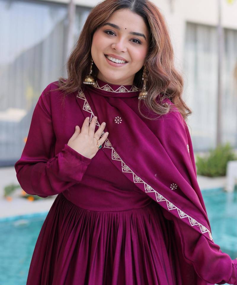 | Product Name | Wine Rangoli Crush Sequins Multi Embroidered Flared Gown With Heavy Dupatta | |