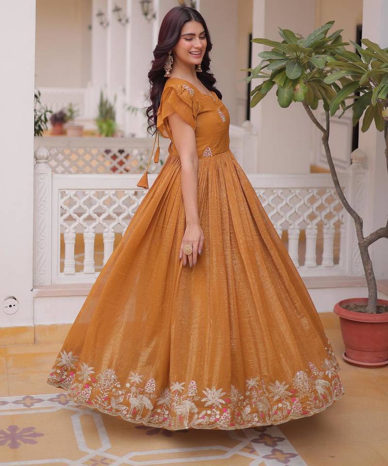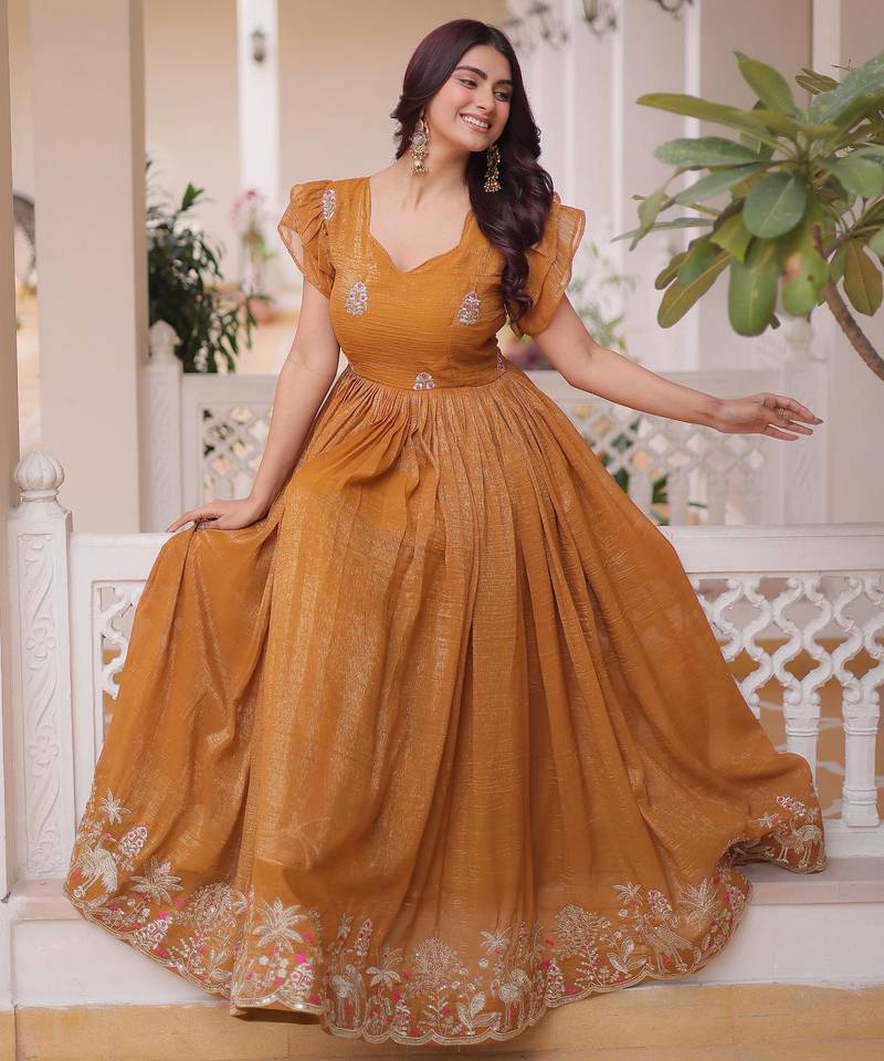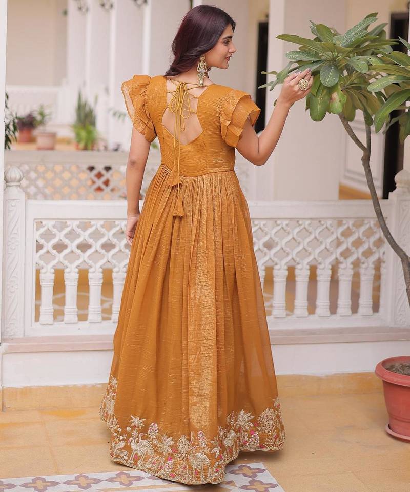 | Product Name | Yellow Silver Crunchy Beads Embroidered Work Designer Gown | |