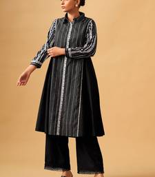 Classic black printed cambric cotton kurta set for effortless daywear stitched