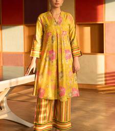 | Product Description | Brighten Your Look With Truly Sma’s Yellow Floral Printed Coord Set. Made From Breathable Cotton, This Two Piece Outfit Features A Floral Printed A Line Kurta With Pleated Detailing And Striped Hem Sleeves, Paired With Matching Multicolour Striped Pants. Perfect For Summer Days, Casual Outings, And Ethnic Inspired Everyday Wear With A Touch Of Cheer |