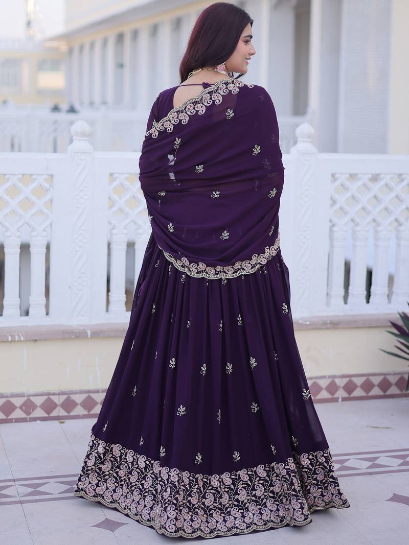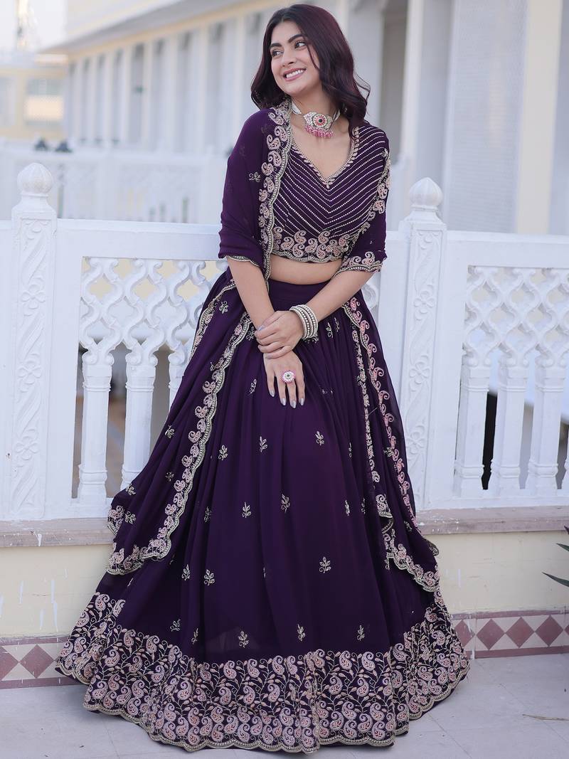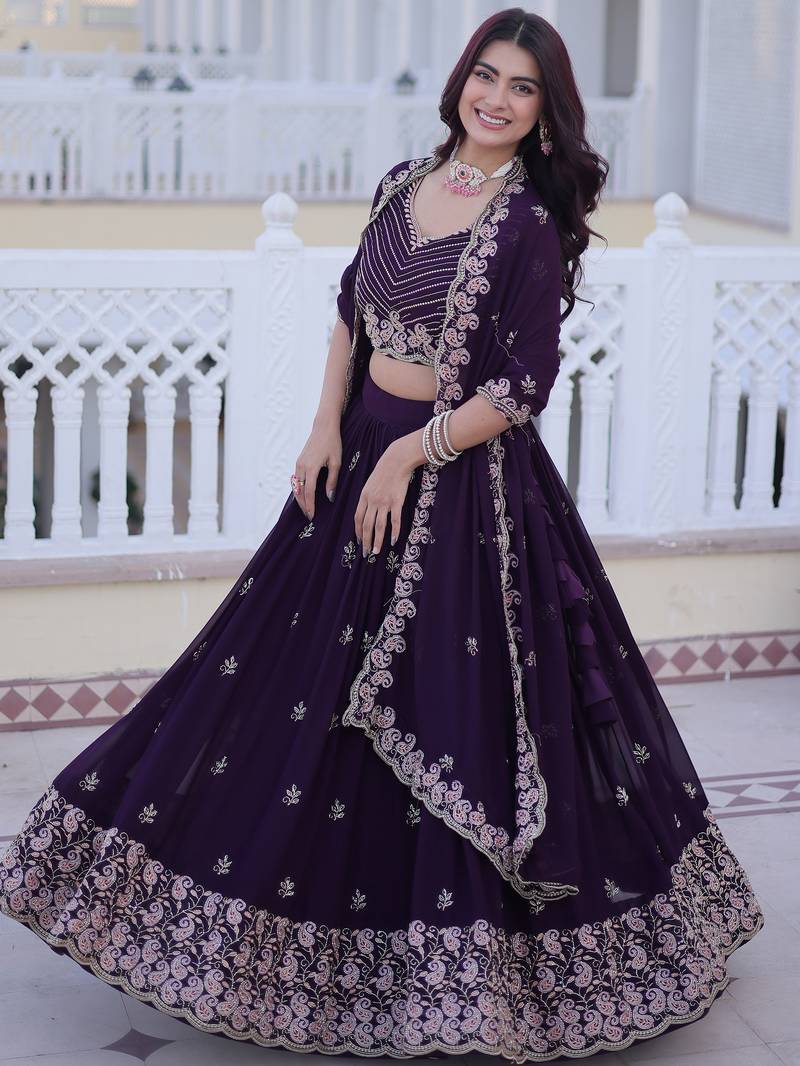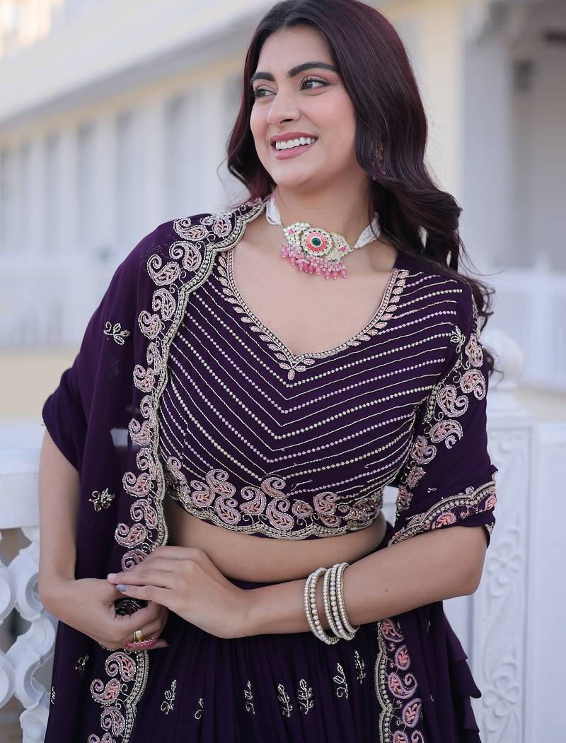 Beautiful wine zari embroidered georgette wedding lehenga choli