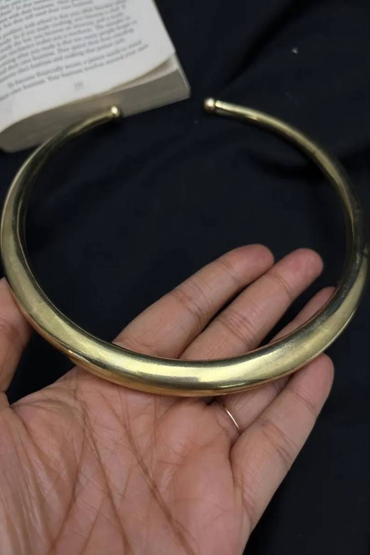 | Product Description | This Rigid Collar Style Hasli Necklace Sits Beautifully Along The Neckline, Creating A Powerful Yet Elegant Statement. Paired With Textured Dome Style Jhumka Earrings, This Set Blends Heritage Craftsmanship With Contemporary Minimalism — Perfect For Weddings, Festivals, Photoshoots, And Bold Everyday Styling.