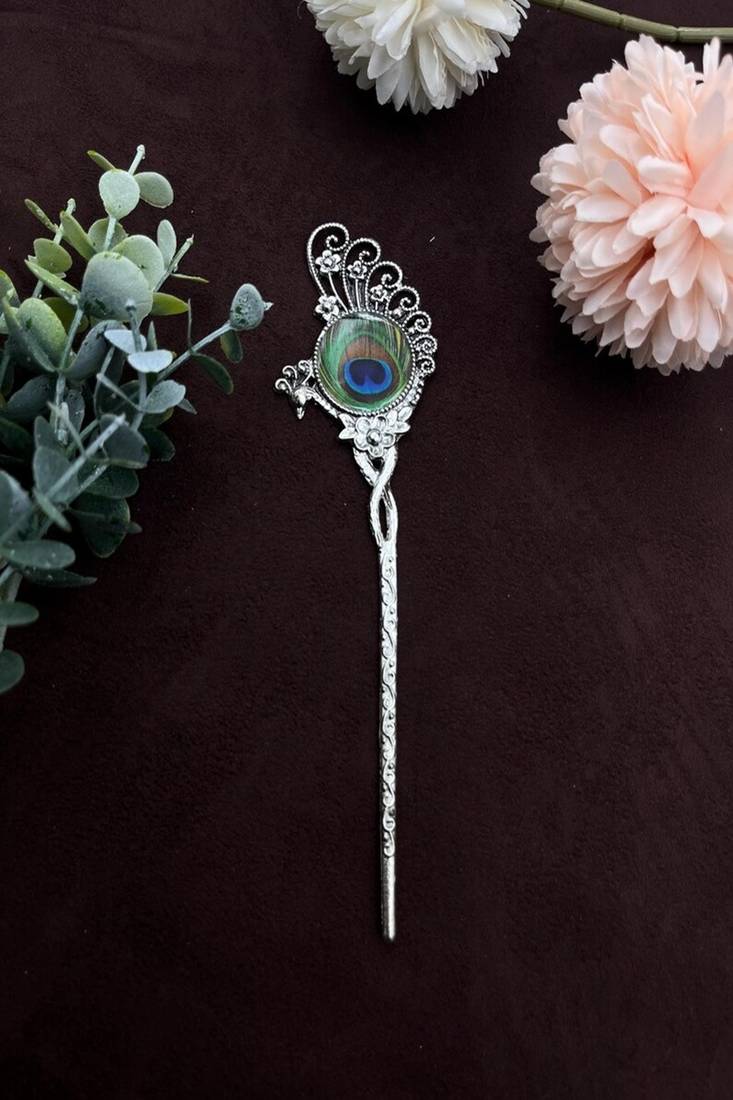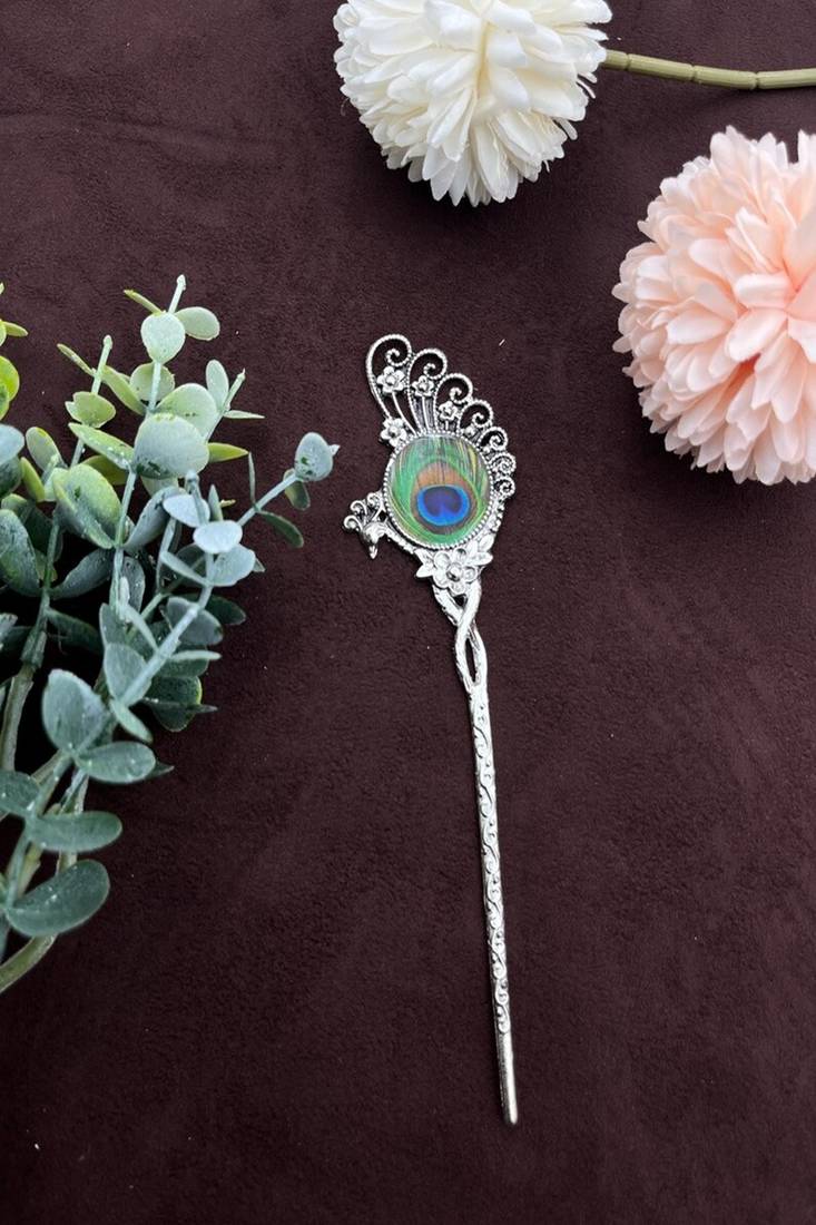 | Product Name | Oxidized Peacock Feather Hair Stick: Antique Silver Plated Hair Pin | |