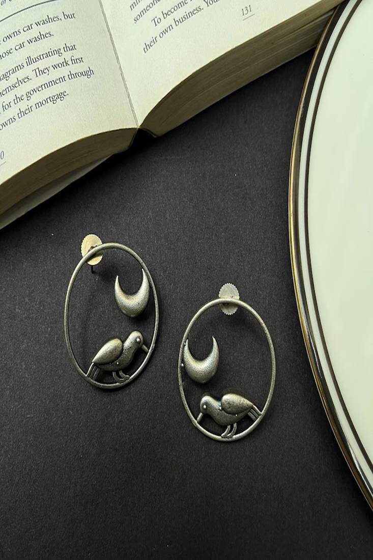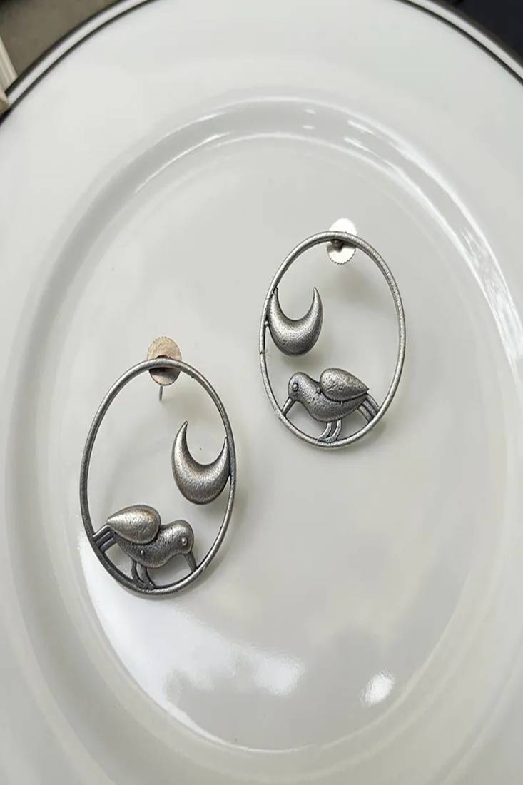 | Product Description | Celebrate The Magic Of Nature With These Stunning Oxidized Silver Earrings, Featuring A Handcrafted Design Of A Bird Perched Beneath A Crescent Moon. Delicate Yet Bold, These Circular Studs Are Perfect For Lovers Of Symbolic Jewelry, Bohemian Aesthetics, And Artisanal Details.