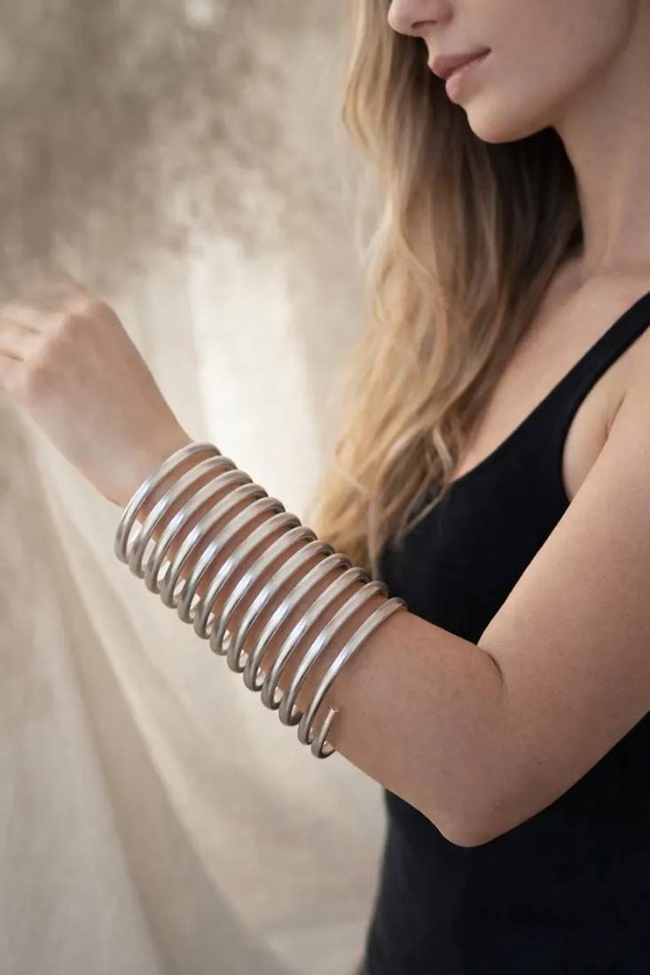 | Product Name | Silver Spiral Coil Arm Cuff Bangle Bracelet Chunky Statement Forearm Cuff, Minimalist Silver Tone Armlet | |